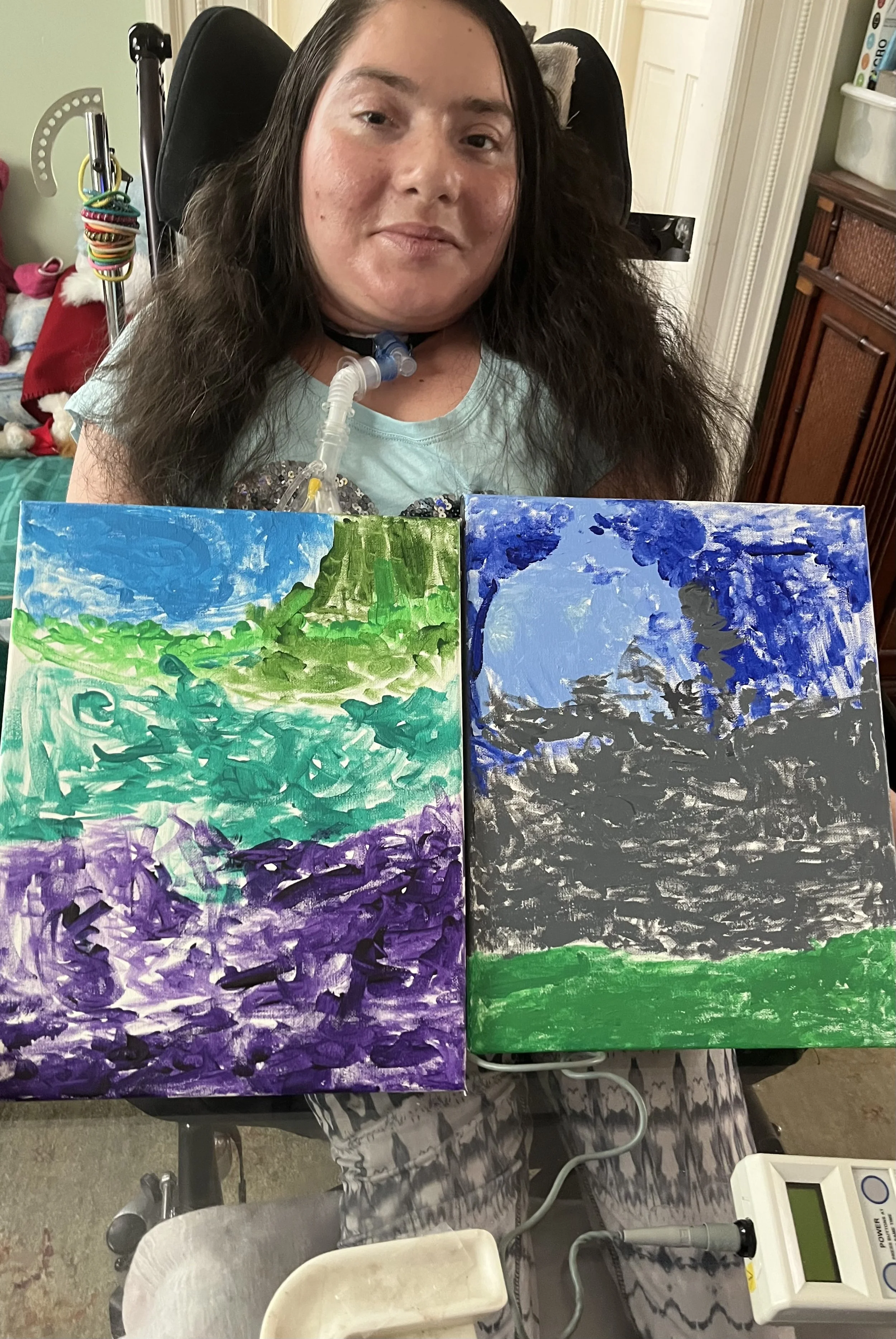 Yes, the title is quite long but I always make a point. I try to reach as many people from all walks of life and abilities. As a woman in my mid twenties with a severe disability I try to use my limitations for good and eventually want to run for politics after I am done working. My disability is so severe but over the years the challenges of singing with a ventilator have been frustrating but rewarding. I also have this thing called a Diaphragmatic pacemaker in my diaphragm. More about my disability will come later. The most important parts are I am a singer, songwriter and painter.